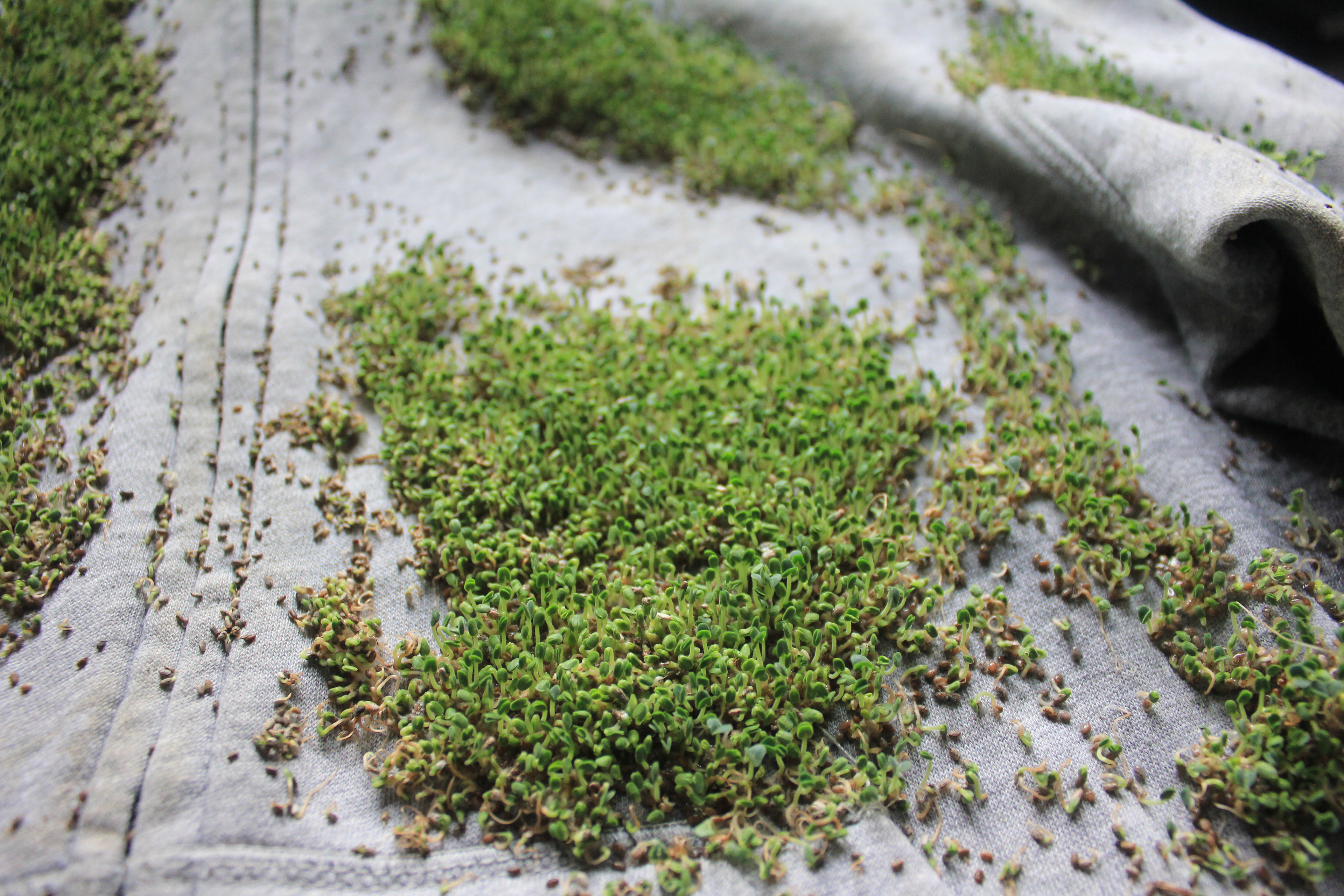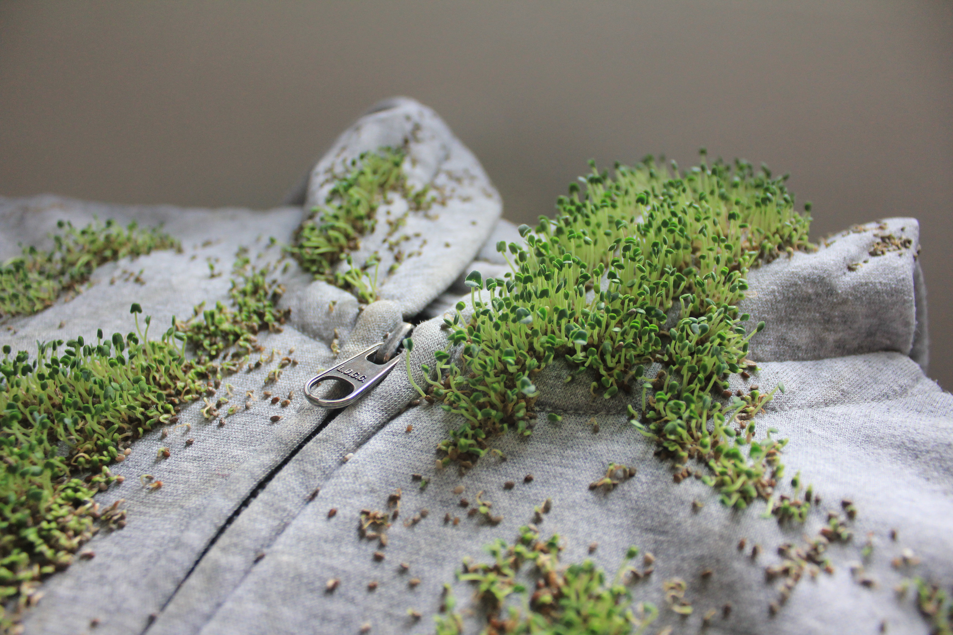 A reimagining of Radiohead’s album, The King of Limbs. The album’s themes are about man’s connection with nature. By letting chia grow on a hoodie, it raises questions about the future of humans on this planet.